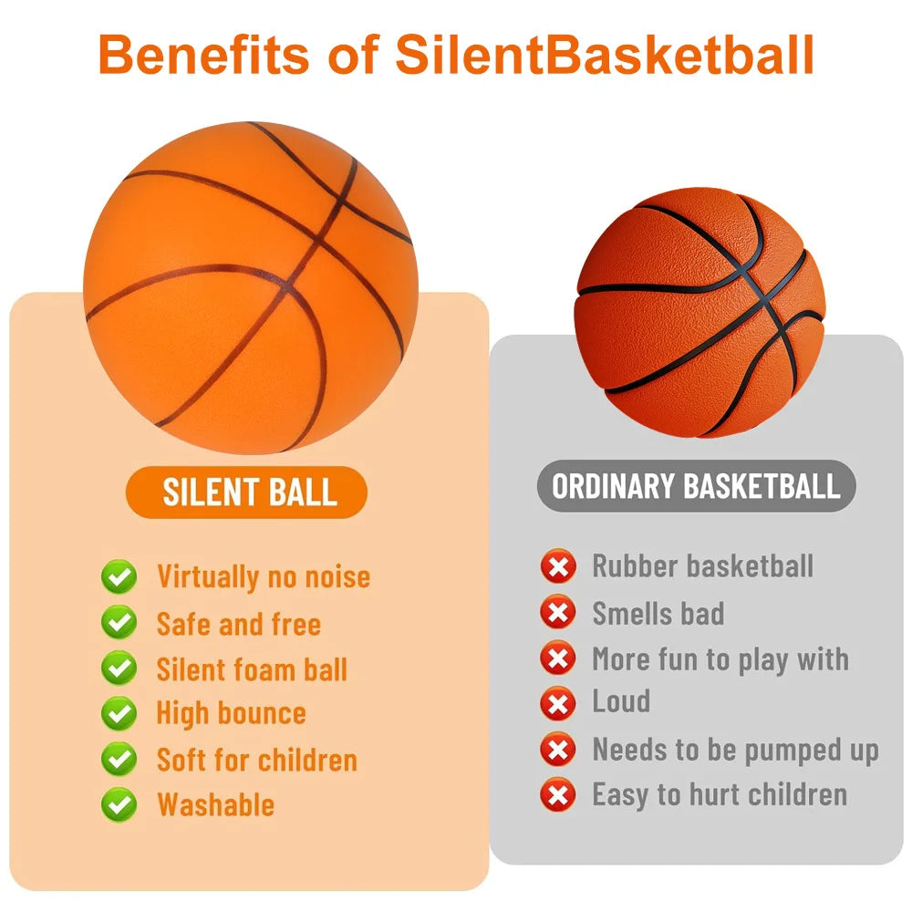 Bring the court home with the Silent Indoor Basketball — designed for quiet practice in any room. Its soft, impact-absorbing material lets you dribble, pass, and shoot without disturbing your family or neighbors. Safe on walls, gentle on floors, and perfect for small spaces, Silent Ball makes every practice session convenient and stress-free.
